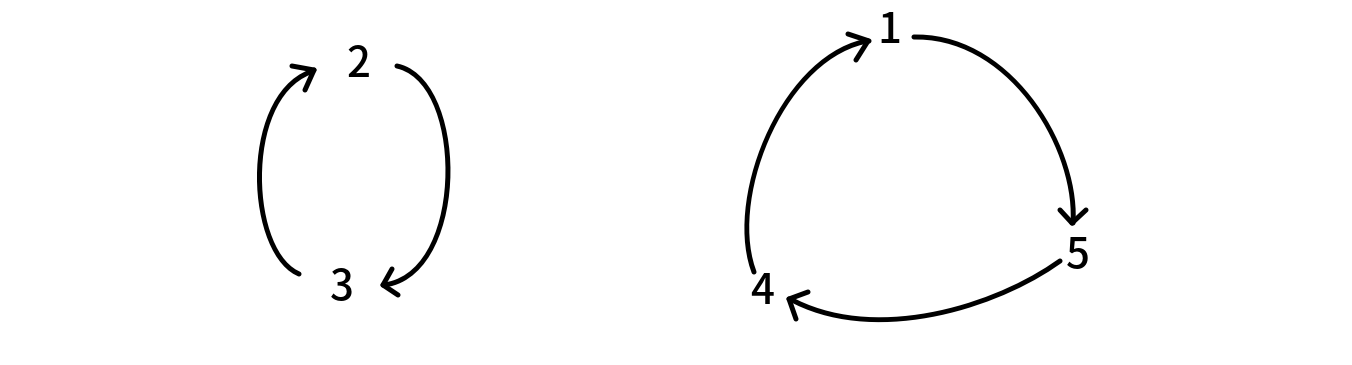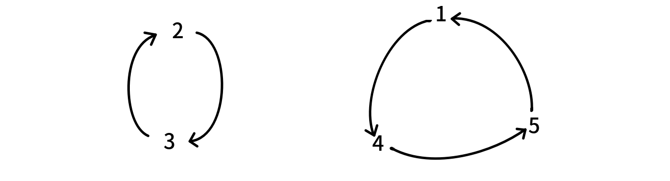 一个排列,是由若干个置换环构成的。例如 \(p=[4,3,2,5,1]\) 有两个置换环: